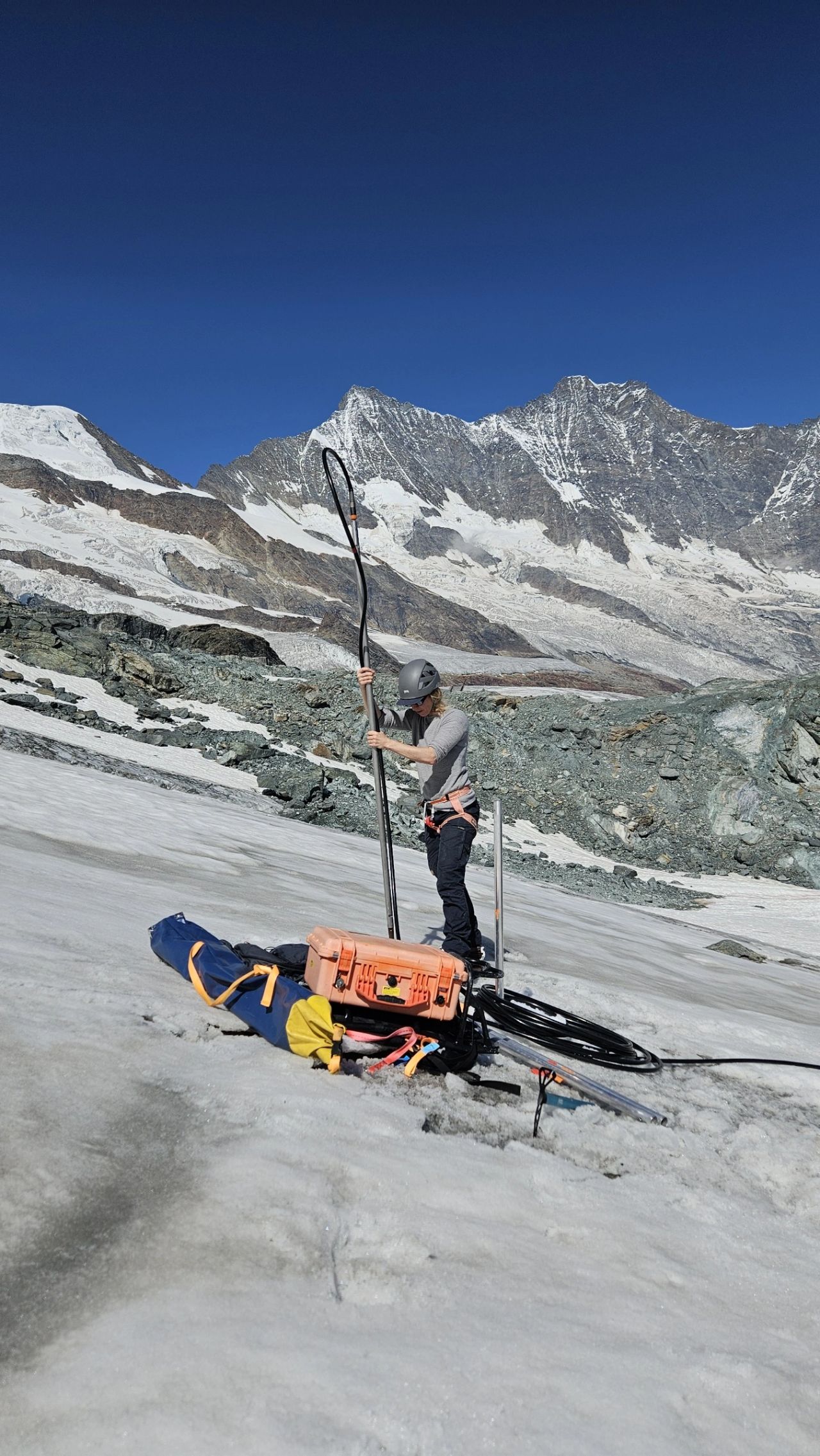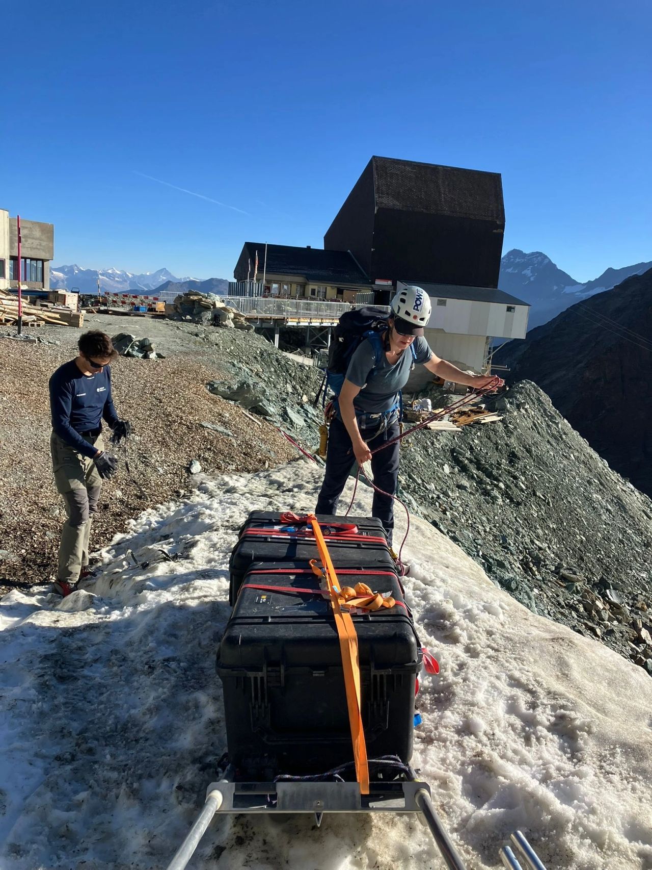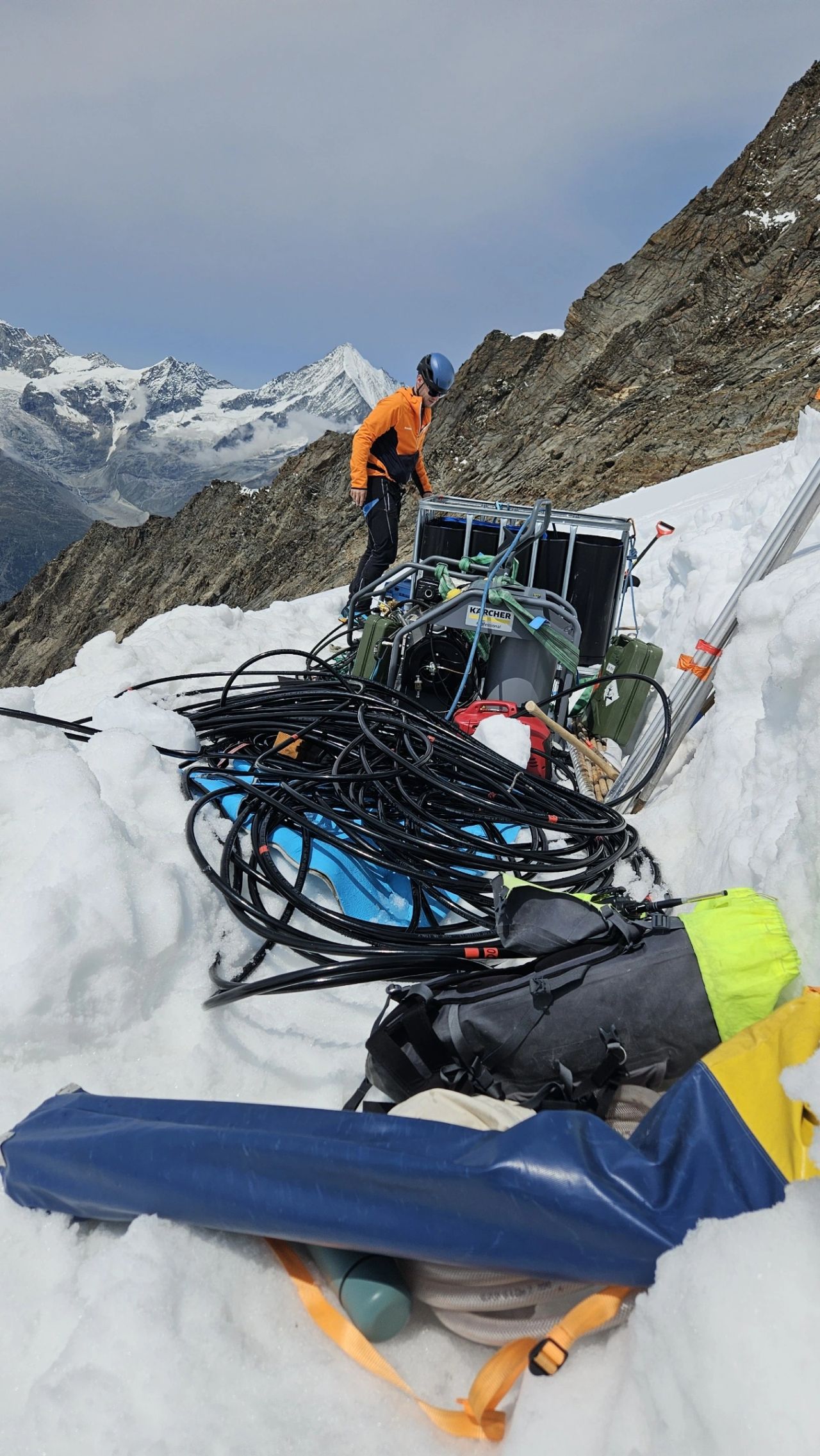 Quelques images de l’Alphubel Süd et le Chessjengletscher. Merci à l’équipe du VAW pour leurs efforts! Janosch Beer Mylène Jacquemart et Raphael Moser ainsi que notre collaboratrice Saskia Gindraux