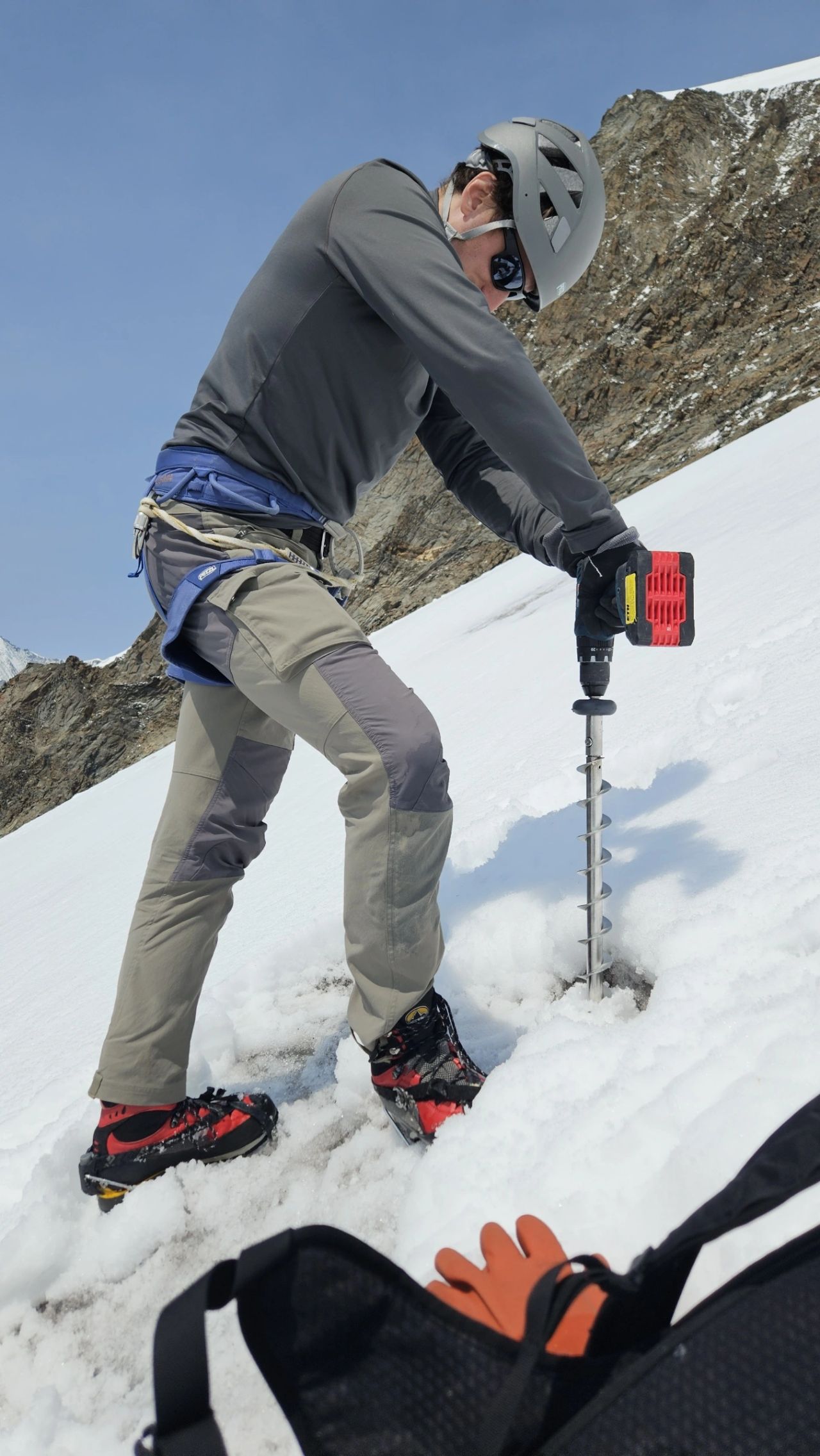 La température de la glace joue un rôle important pour leurs stabilité, c’est pourquoi des campagnes de terrains ont été organisées dans le but d’installer des chaînes de catpeurs de température. Plusieurs forages de 20 à 50 mètres de profondeur ont été nécessaires pour les installer. Un casse tête logistique pour leurs emplacement entre 3000 et 4000 d’altitude!